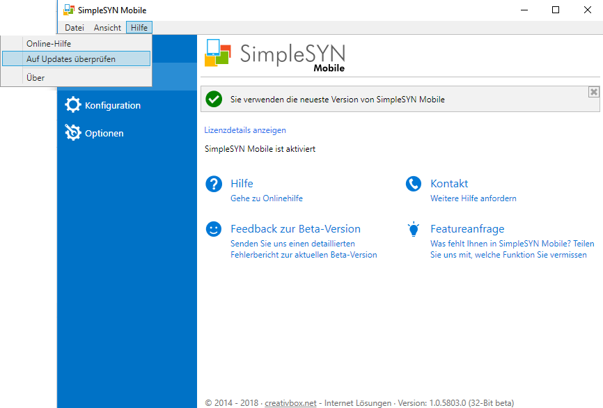 SimpleSYN Mobile BETA > Informationen zu Updates